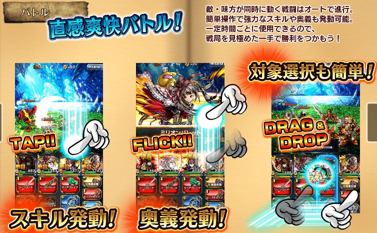 基本的には、オートバトル。しかし、タップ&ドラッグの簡単操作でド派手なスキルや装備を使いこなせばより効果的に戦闘を進めることができます。