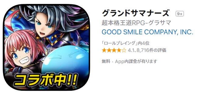 2/20日までの期間限定!今すぐDL!https://t.co/QLQkCsGfhr#グラサマ #転スラ pic.twitter.com/3QSn7U4O2t— 【公式】グランドサマナーズ@転スラコラボ 明日、1/22(火)より開始 (@GRANDSUMMONERS) January 22, 2019