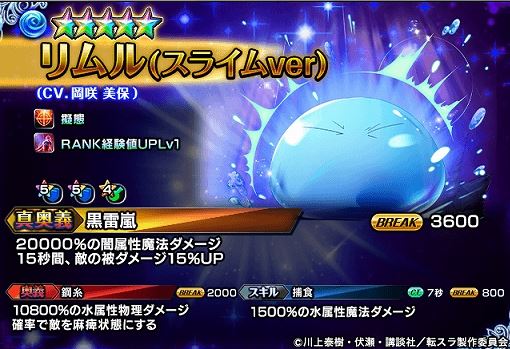 ※『【限界突破用】リムル』を使用することで『リムル(スライムver)』を限界突破することができます。