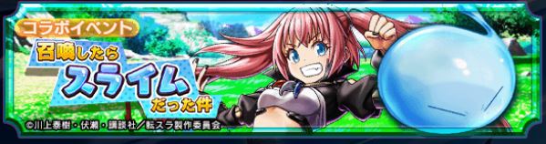 好評放送中のTVアニメ『転生したらスライムだった件』とのコラボイベント『召喚したらスライムだった件』を開催されています!クエストをクリアしてゲームに役立つ限定装備や限定紋章石を集めましょう!